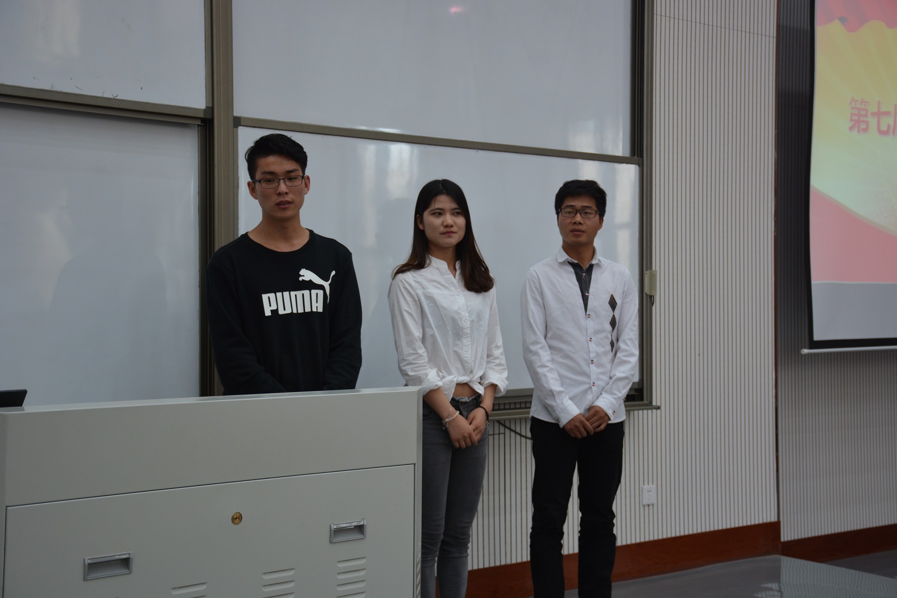 2017届优秀毕业生担任主讲:尉翔栋、邢一丹、杨明炜(从左至右)