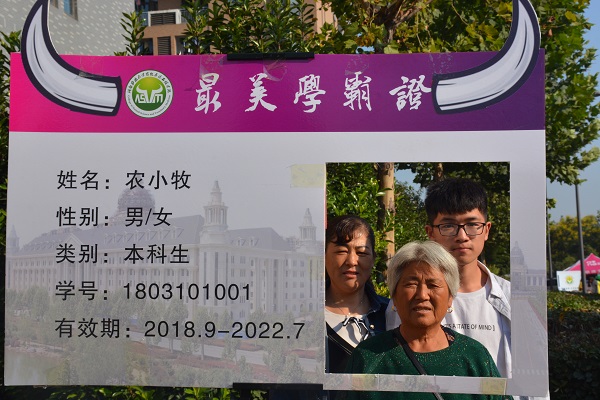 新生与家长留下进入大学后的第一张合影