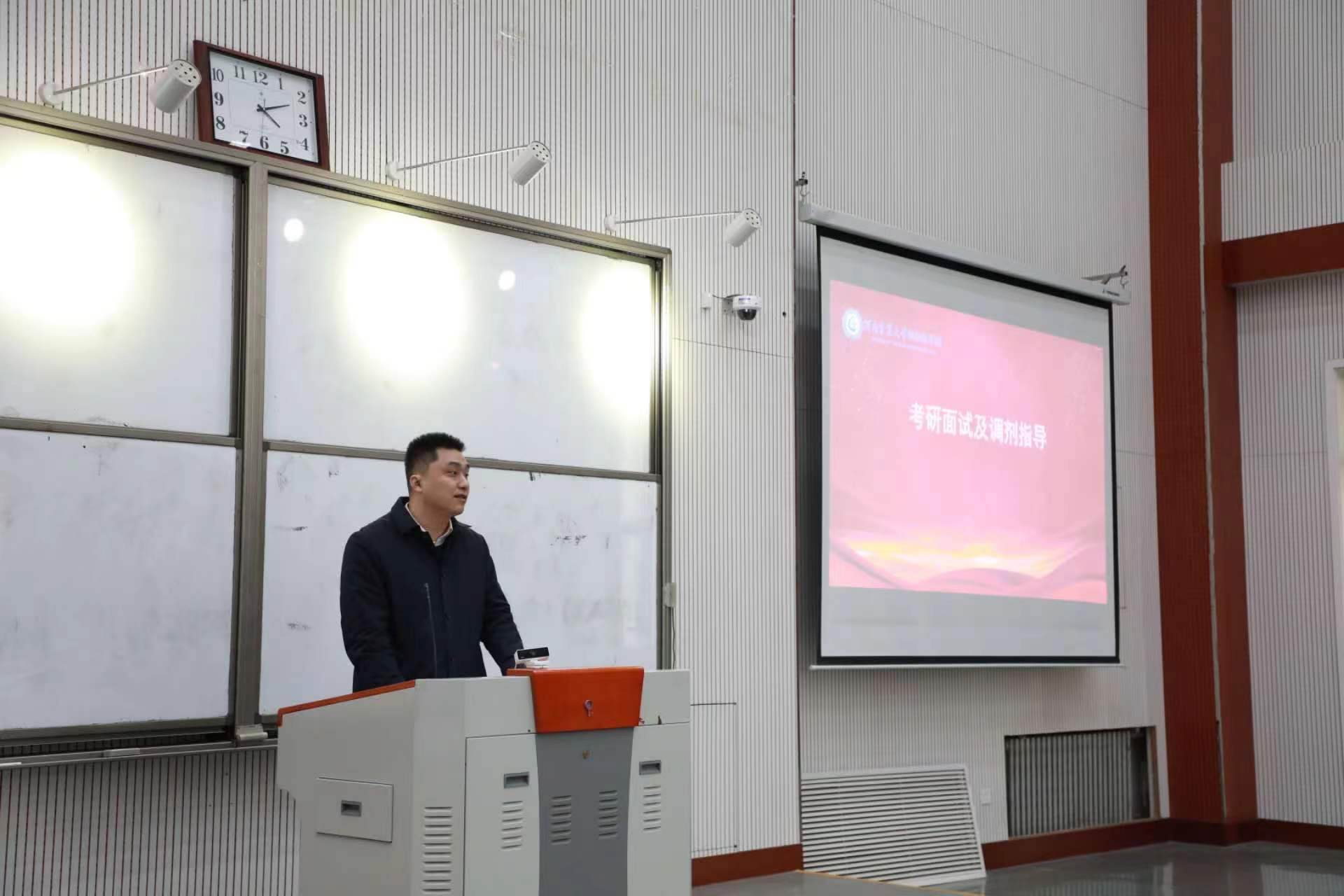 会上,杜家方就就业政策、以及求职技巧等问题进行了讲解,并强调了安全问题。韩立强就实习动员和毕业设计安排进行详细讲解。张越、李成龙就考研面试相关问题进行详细指导,介绍了复试基本流程以及注意事项,为考研学生提供了切实帮助。毛梓丞老师就征兵入伍政策进行宣讲。