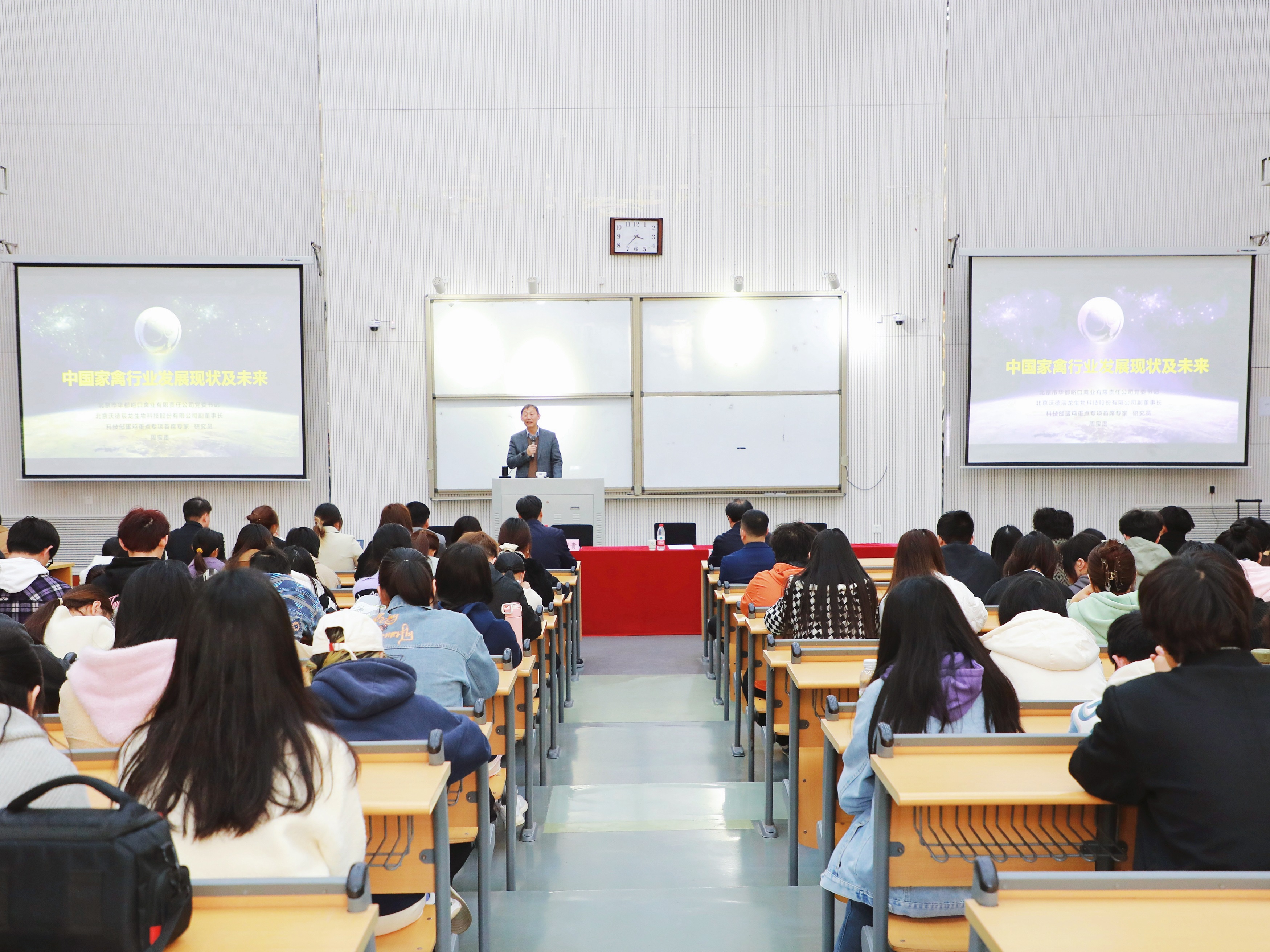 周宝贵以中国家禽行业发展现状及未来为切入点,分析目前行业存在的现状与分析,层层递进、深入讲解。通过对沃德家禽行业发展之路、数字化的推动发展,剖析现代企业对于人才的需求,分享行业未来发展趋势。结合“互联网+”大趋势,强调创新性转化、创新性发展的重要性,要与时俱进、抓住机遇、发展机遇。详细介绍了沃德股份是如何坚守40年,解决老百姓吃蛋难的问题,实现中国蛋鸡高质量发展,并以此激励同学们坚持初心,发现自身优势,学好专业知识,坚定专业自信。