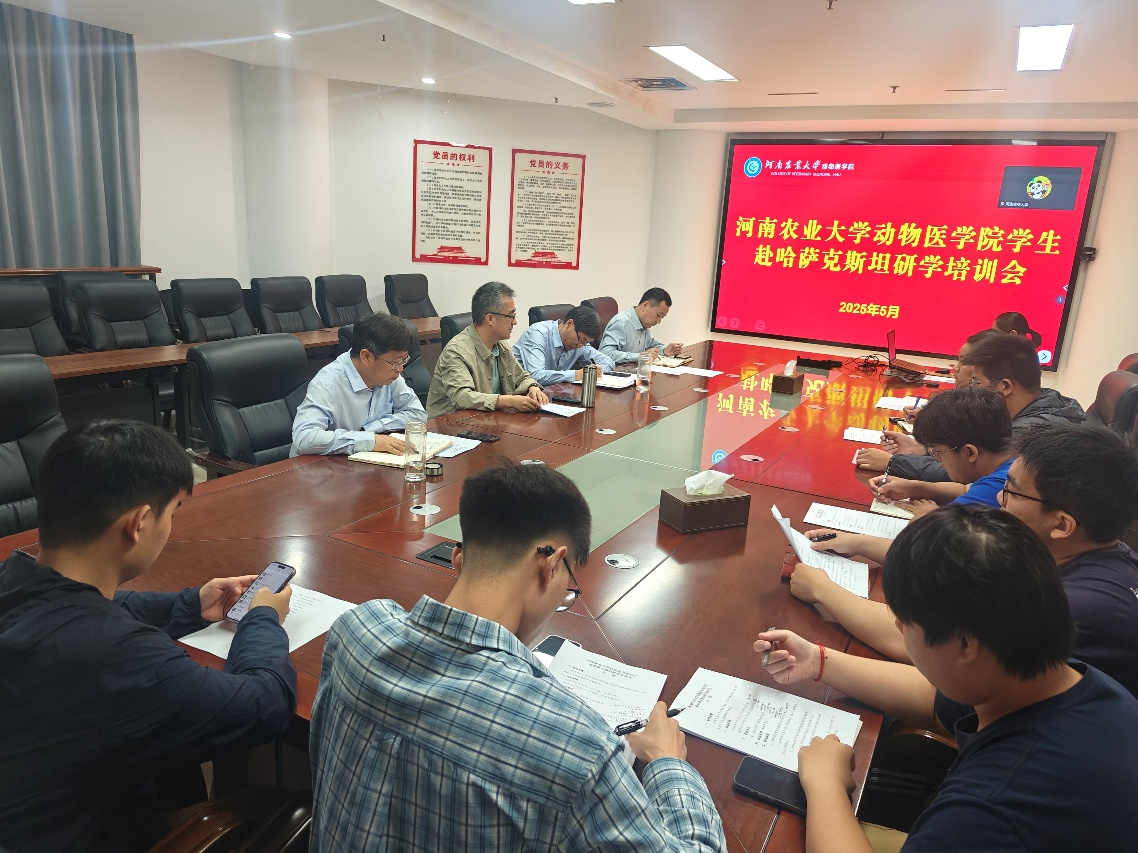 5月27日,18禁直播 召开2025年研究生赴哈萨克斯坦国立农业研究大学(Kazakh National Agrarian Research University,KazNARU)学习交流行前培训会。哈萨克斯坦国立农业研究大学全球开发部主任Abdramanov Abzal,校国际交流合作处处长屠克,院党委书记廖仲磊,院长魏战勇,党委副书记杜家方,8名参加此次出国学习交流的研究生及导师参加培训。培训会由魏战勇主持。