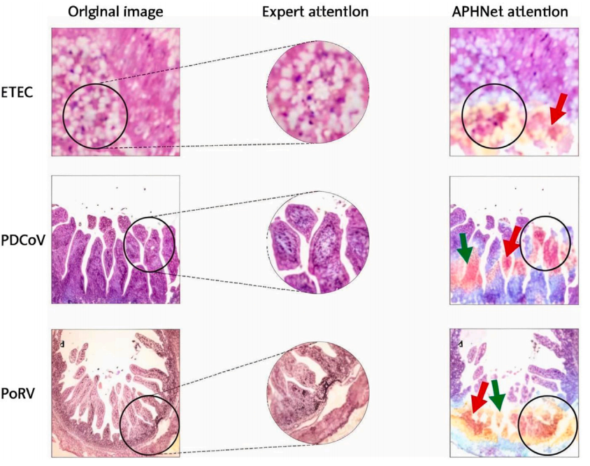 “人工智能+动医交叉” 联合研究平台,实验室持续推进图像识别、模型构建与可解释性分析技术在重大动物疫病防控中的落地应用。所有图像由智能兽医实验室建设的高分辨率病理图像平台采集,涵盖2012–2024年516例猪只腹泻病例数据。研究得到河南省重点研发专项(242102211012)资助。