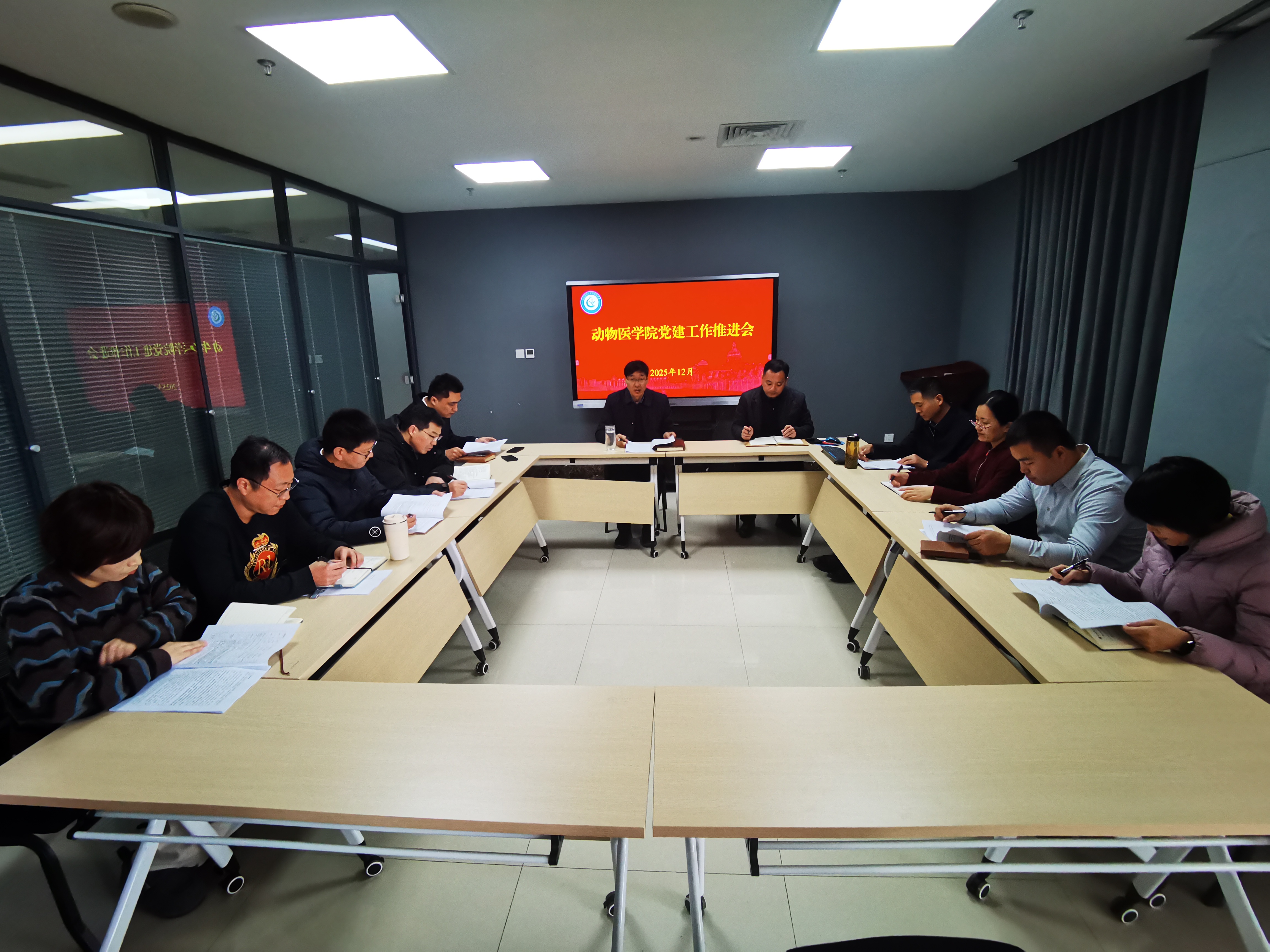 召开党建工作推进会议,院党委书记廖仲磊出席并主持会议,学院领导班子有关成员、教工党支部书记等参加会议。