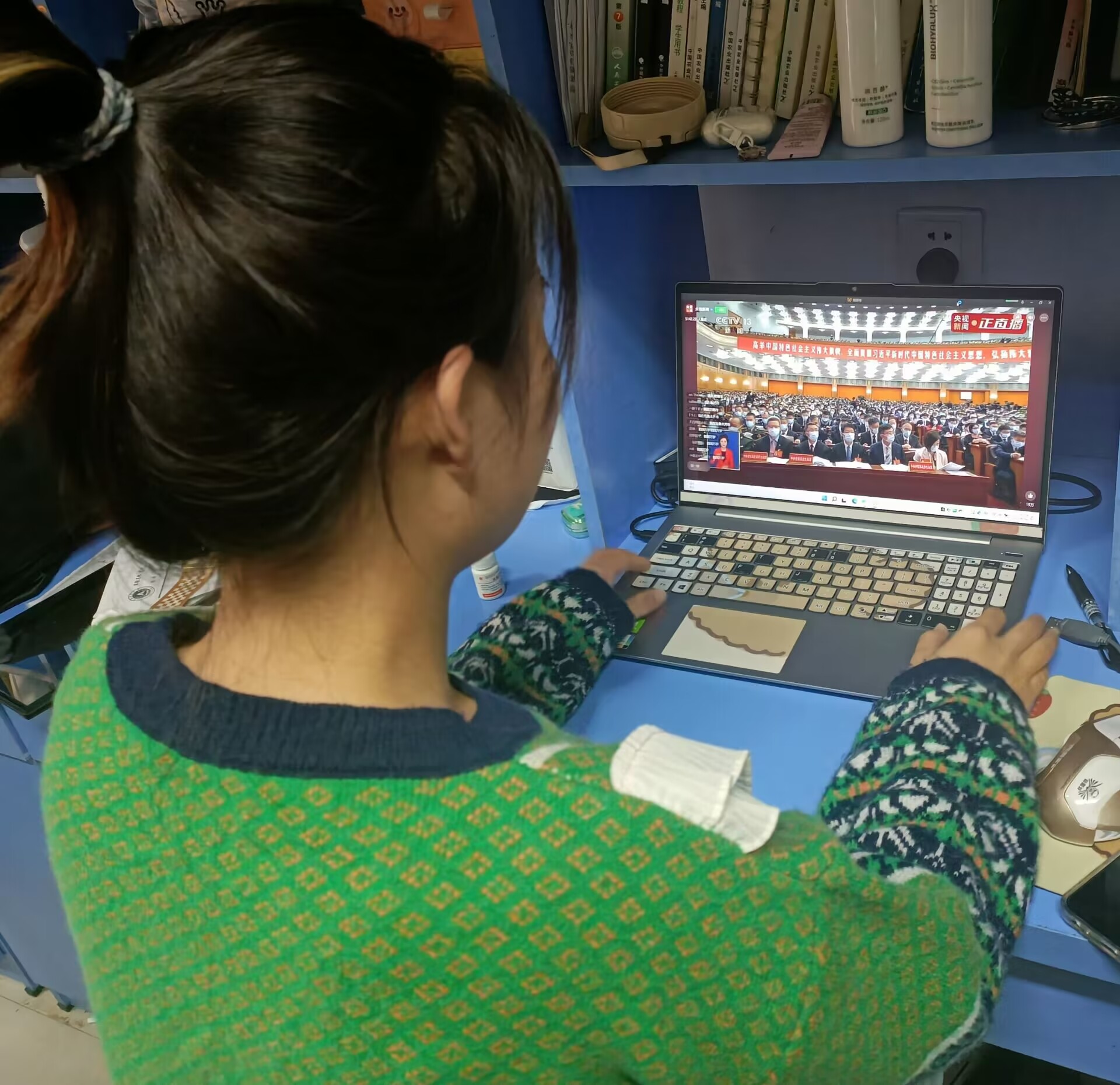 师生根据疫情防控形势采取集中或分散的形式收听收看二十大开幕会,认真学习习近平同志讲话精神。