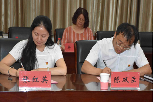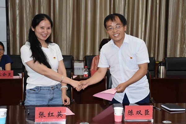 预防兽医系支部书记张红英与该校园艺系党支部书记陈双臣就各自支部的建设情况进行了充分交流,双方签订了“全国党建工作样板支部”倡议书,共同倡议: