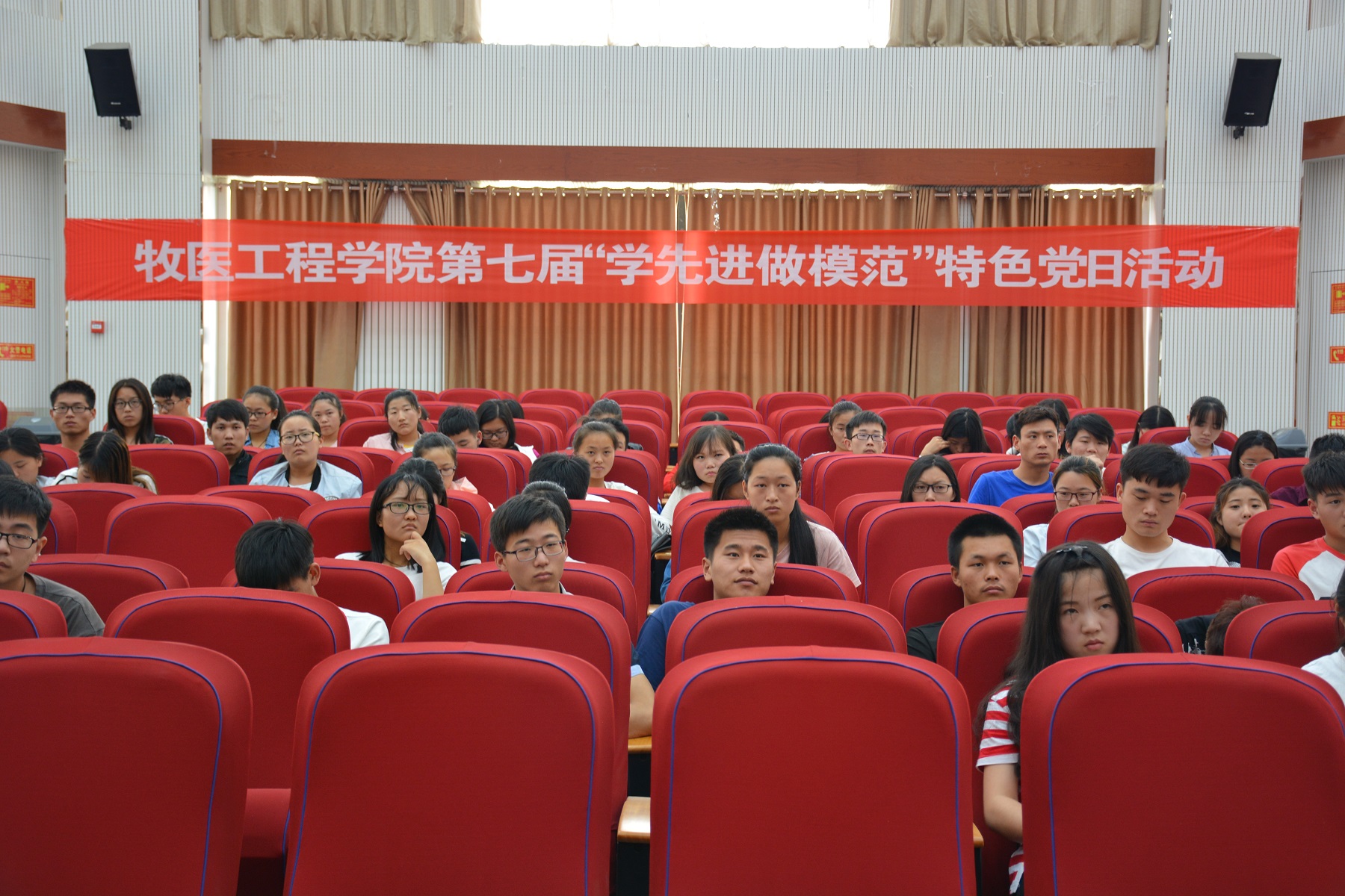 在龙子湖校区繁塔楼大教室6举行了第七届“学先进 做模范”特色党日活动。院党委组织员来卓出席活动,13级优秀毕业生代表杨明炜、邢一丹、尉翔栋作为优秀毕业生代表分享了大学四年的学习感受,学生党员和部分学生干部参加了活动。
