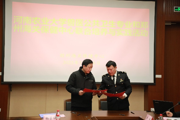 为保健中心授予了兽医公共卫生专业校外实践教学基地的牌匾,双方提出通过实施资源平台共享,设立实践教学基地等多种形式联合培养兽医公共卫生专业人才。