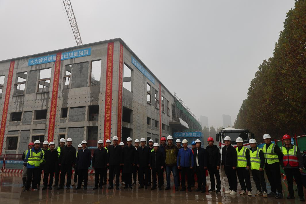 在封顶仪式结束后,基建处处长李浩贤一行走进主体结构内部,详细了解P3实验室的平面布局和工程建造现状等。魏战勇表示:“P3实验室的建设承载着国家生物安全战略、学校“双一流”创建和科技创新的重任,是国家和区域生物安全体系的重要支点。虽然目前还面临一些问题和挑战,但我们有信心、有决心按计划推进各项工作,早日将其打造成国家生物安全战略科技力量,为保障畜牧业生产安全、保障公共卫生安全提供关键技术支撑,学校“双一流”创建及兽医学科发展贡献力量!”(文/李名洋)