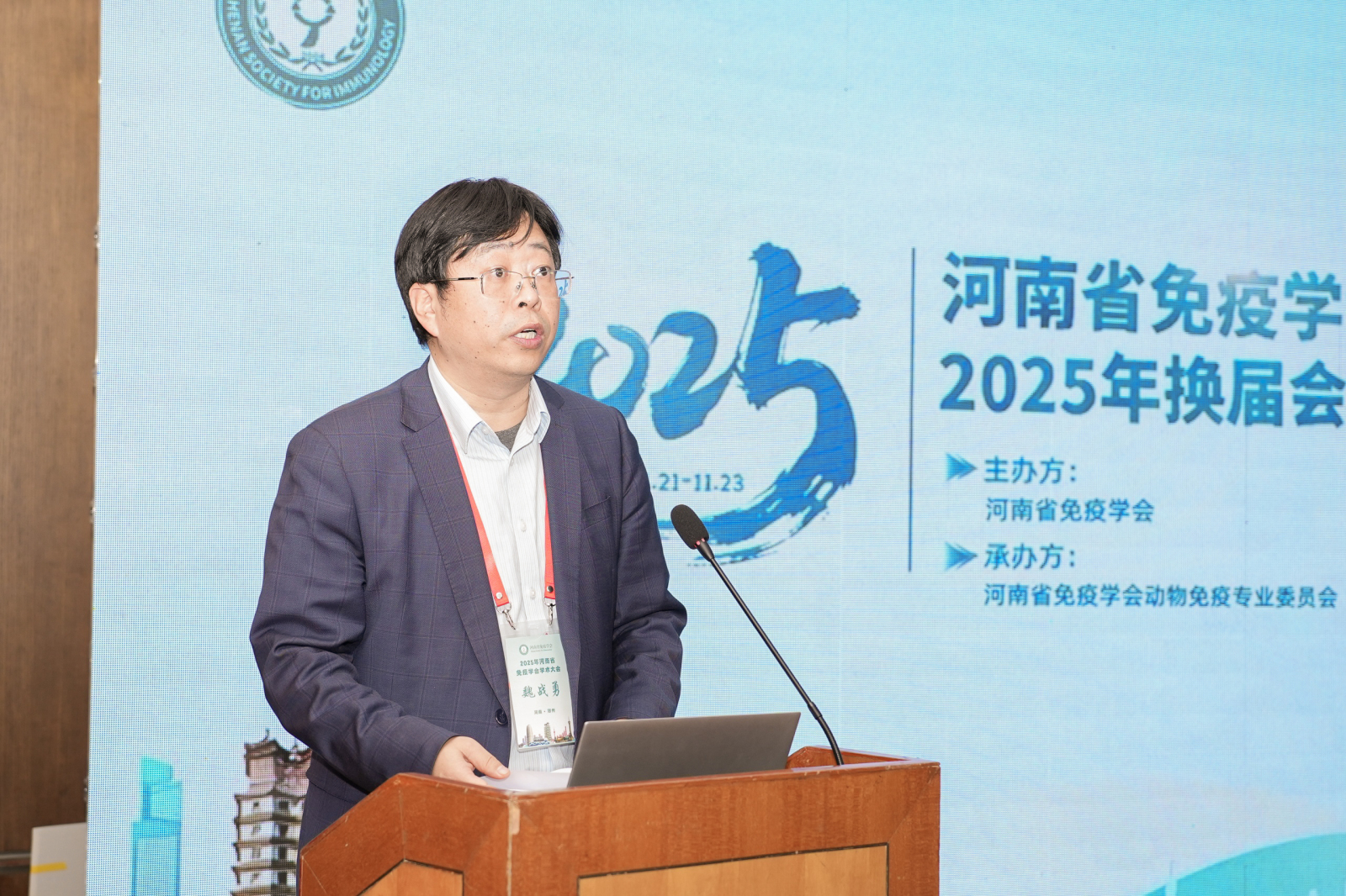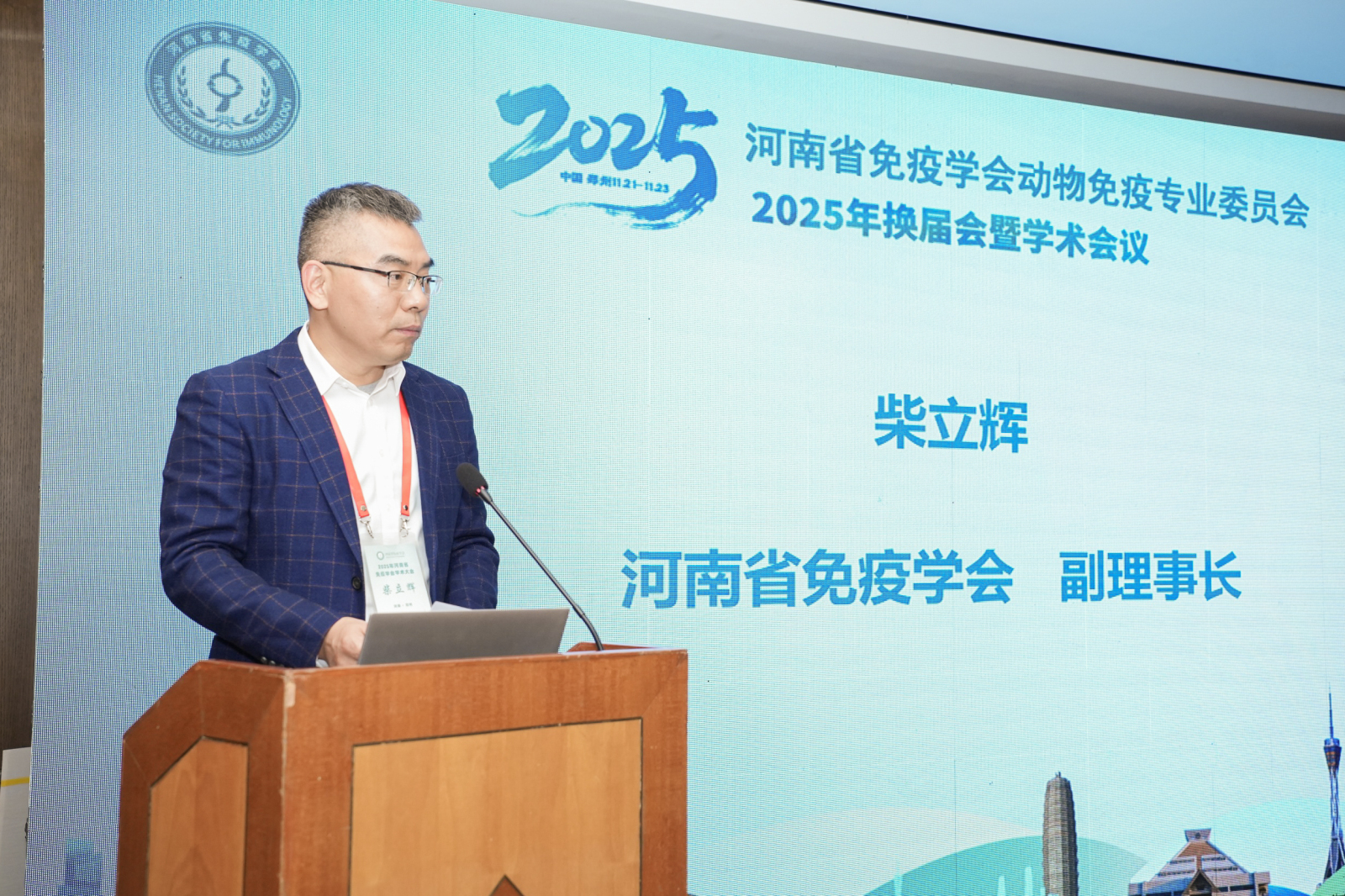 河南省免疫学会副理事长柴立辉教授代表学会致辞,向新一届委员会成立表示热烈祝贺,并对上一届委员会的工作成绩给予高度评价。他强调,动物免疫学是疫病防控与食品安全的重要支撑,希望新班子传承优良作风,勇于开拓创新,为推动我省相关学科与行业进步发挥更大作用。