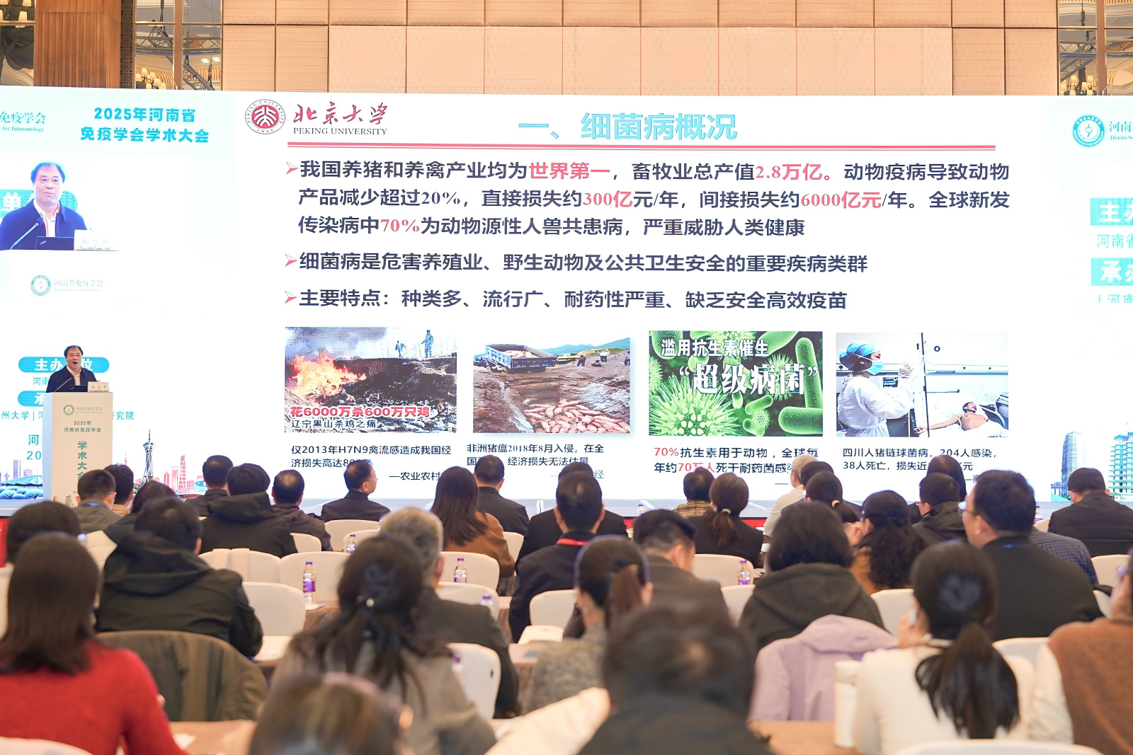 2025年11月21日至23日,由河南省免疫学会主办,郑州大学河南省医药科学研究院承办,龙湖现代免疫实验室、免疫技术专业委员会、类器官与免疫专业委员会协办的2025年河南省免疫学会学术大会在河南郑州顺利召开。中国工程院院士张改平教授应邀出席并作大会首场主旨报告,题为“我国人兽共患细菌病疫苗研发现状及未来挑战”。