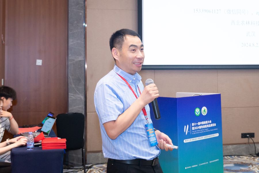 王璐阳博士作了《放牧羊蜱传病原的诊断及防控》报告;佛山正典生物技术有限公司研发平台首席王新秋作了《正典生物寄生虫防控技术研发进展》报告。