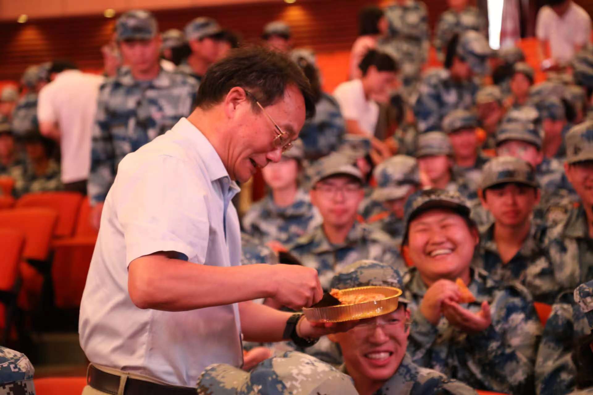 正值中秋佳节,学院特别策划“共度中秋节,同吃一张饼”活动,为军训教官和全体新生准备了水果和月饼,学院领导、班主任、团委老师来到学生中,分享节日食物,共话佳节。现场氛围其乐融融,新生们在学校感受到了家的温暖。