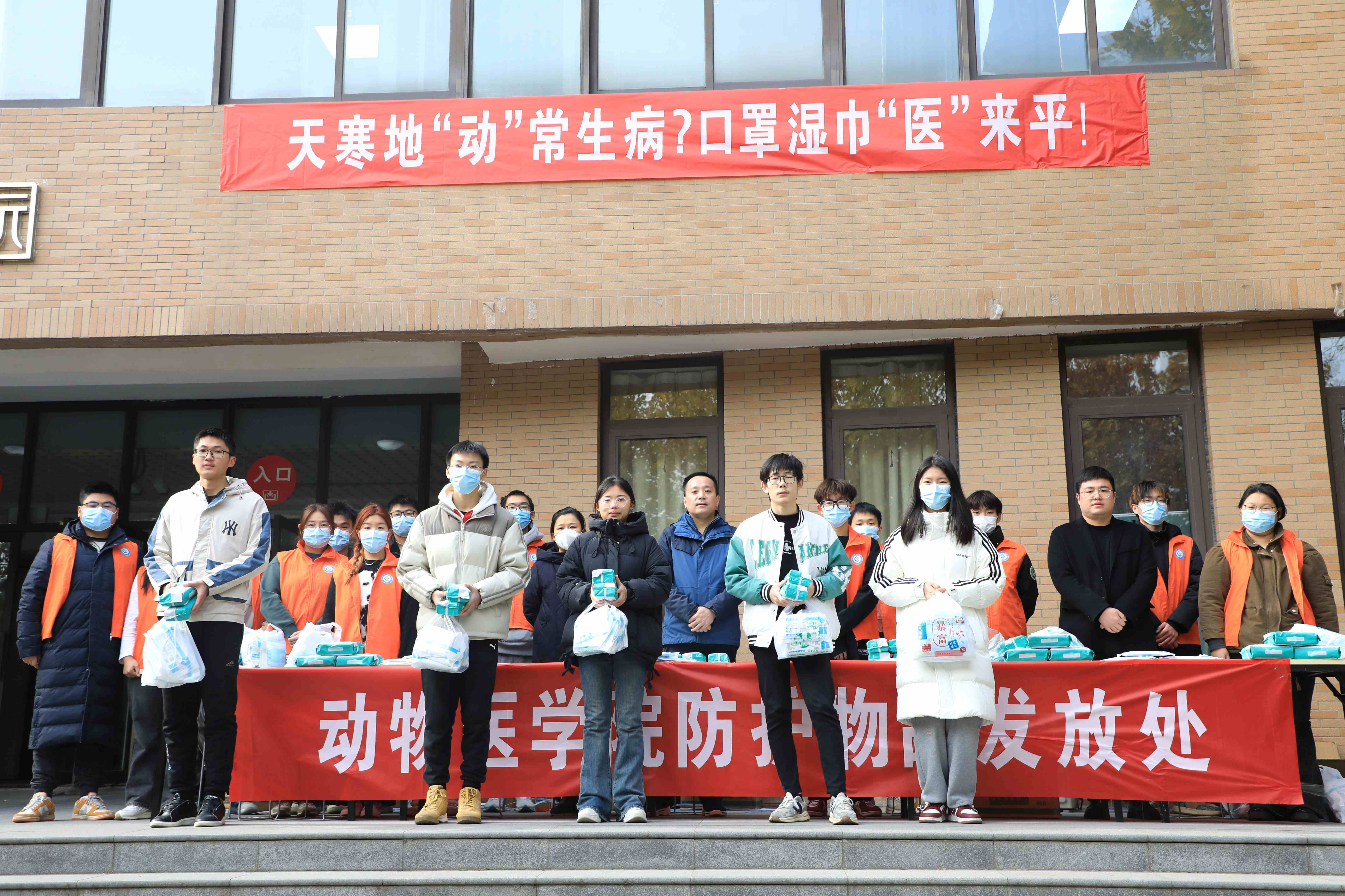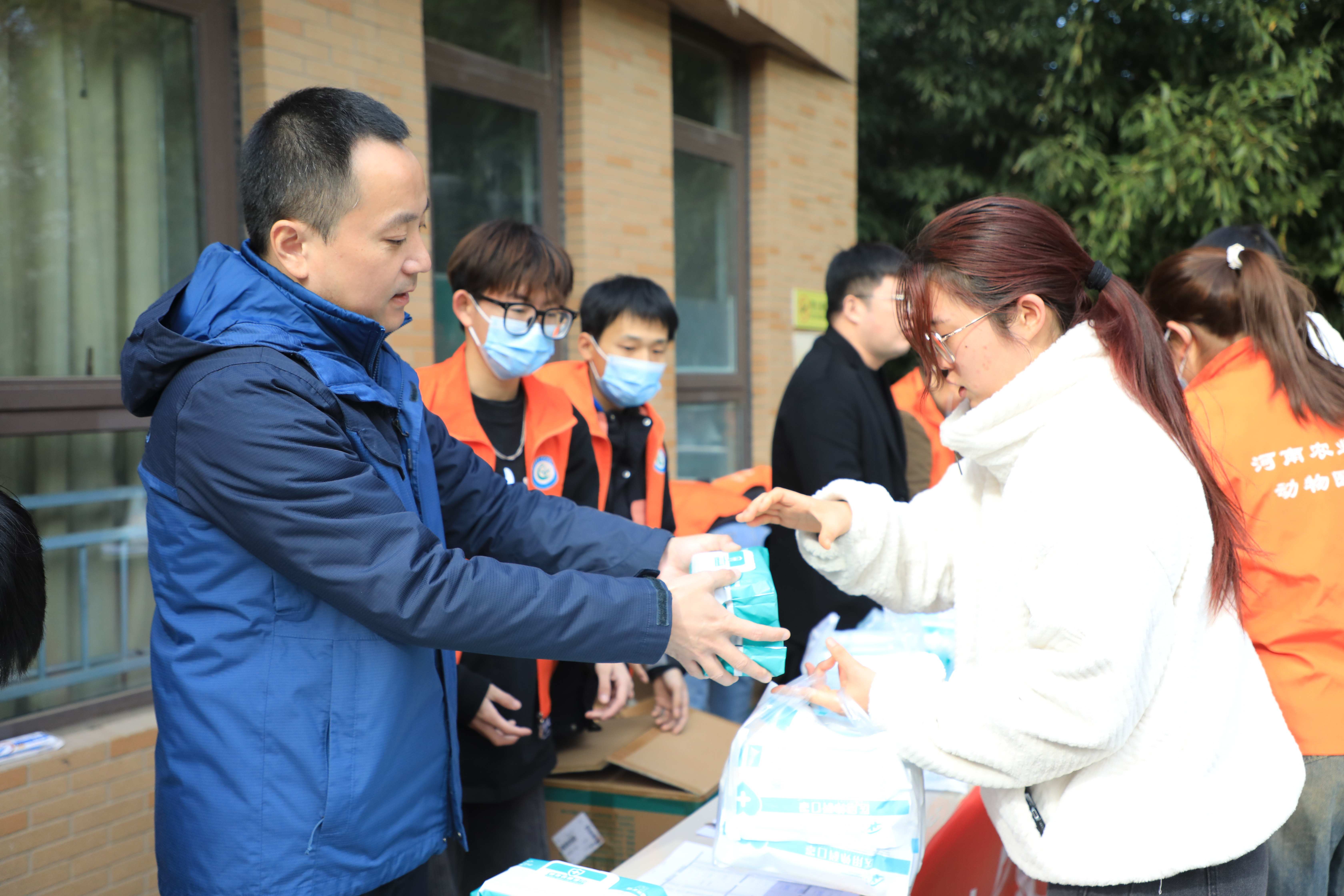 于2023年11月29日在龙子湖校区和文化路校区同步开展“天寒地‘动’常生病,口罩湿巾‘医’来平”防疫等相关物资发放活动。院党委副书记杜家方,全体辅导员老师出席此次活动,全体在校同学参加活动。