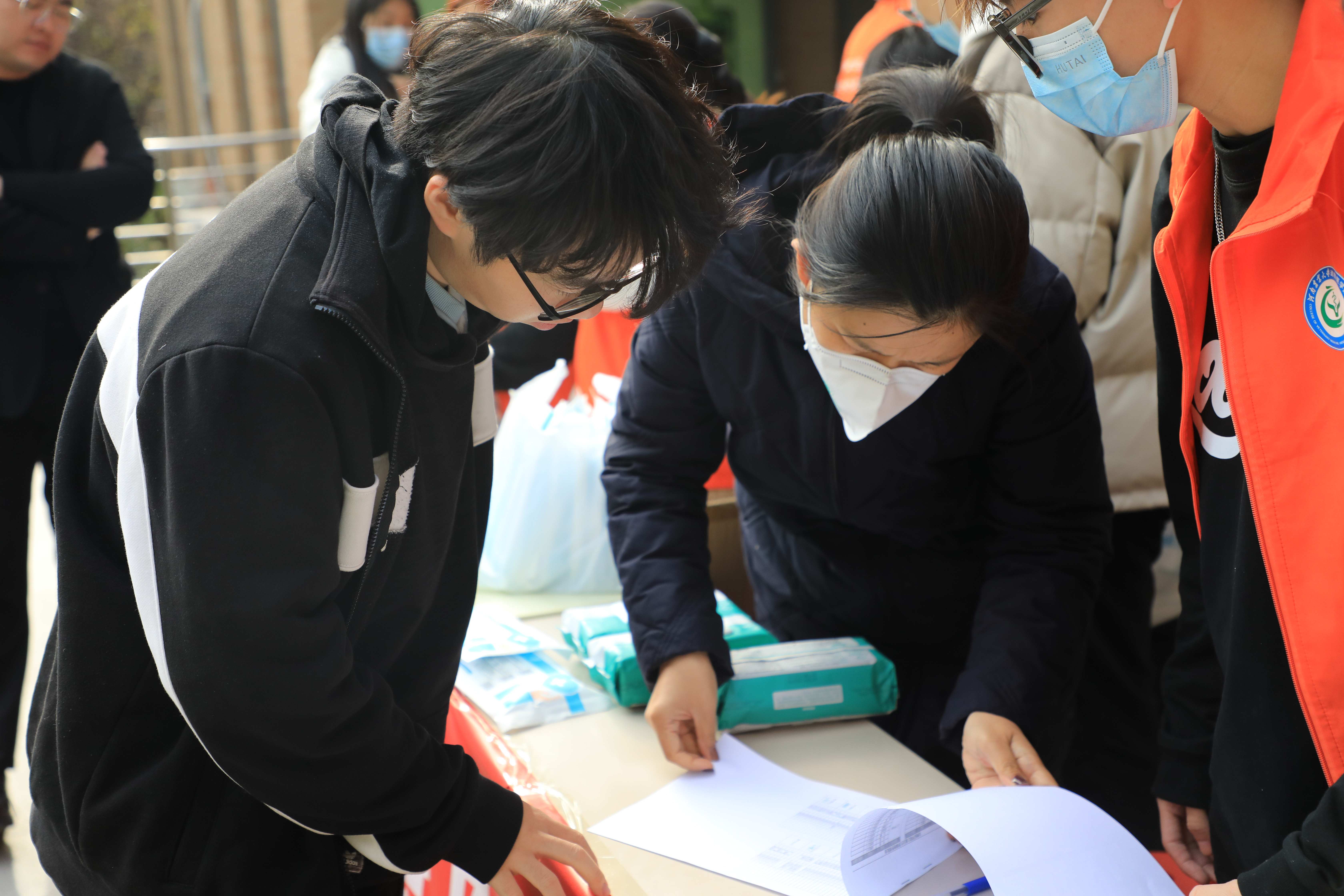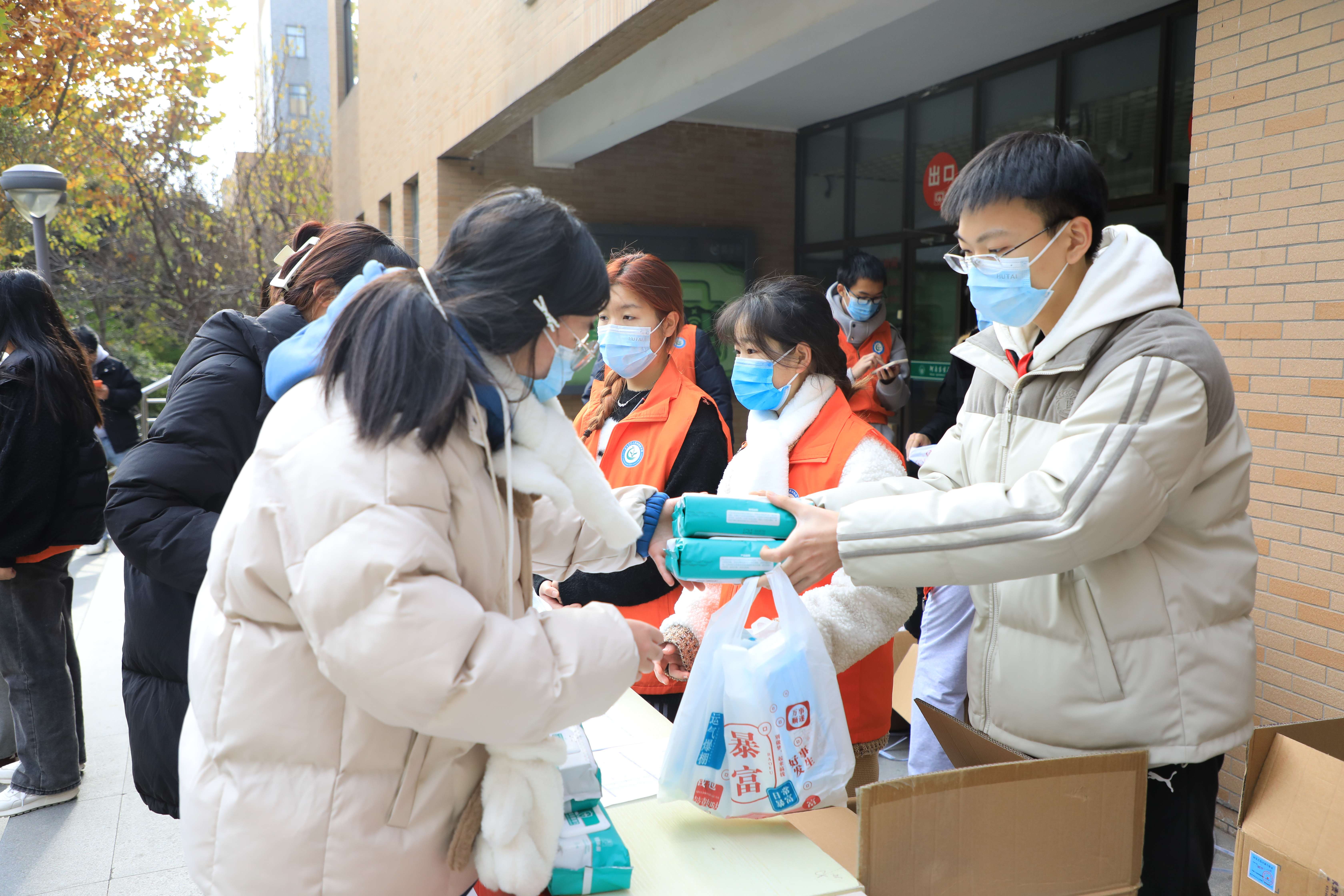 随后,参与老师和志愿者为同学们发放防疫物资。领取到物资的同学们也纷纷表示学院的关心,解决了同学们的燃眉之急,为接下来的学习生活提供了有效的保证。