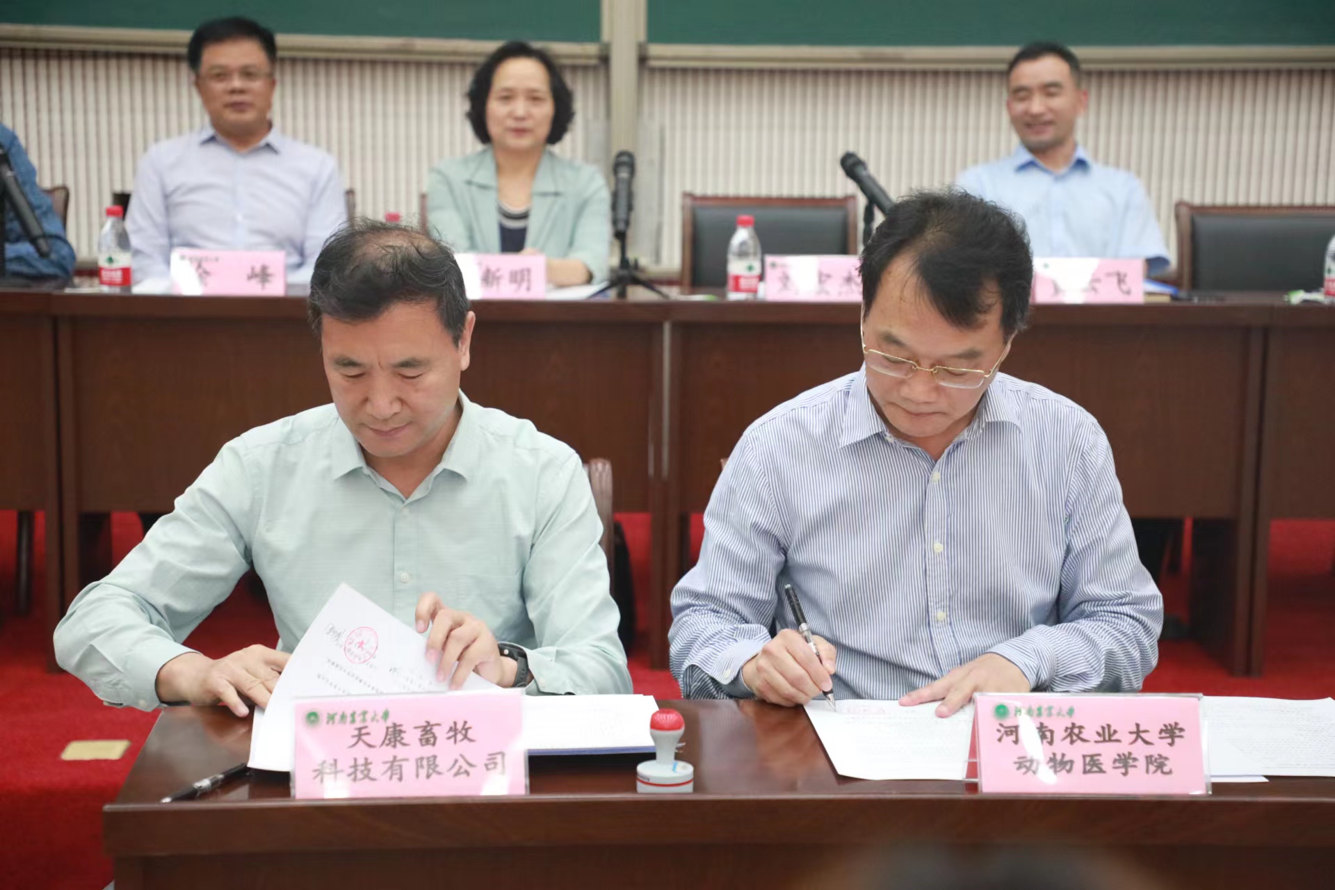 设立的兽医专项人才基金协议签订仪式在繁塔楼大教室7举行。副校长尹新明、天康畜牧科技有限公司研究院院长刘宏杰、校党委学生工作部部长徐峰、校团委书记贾云飞,18禁直播
