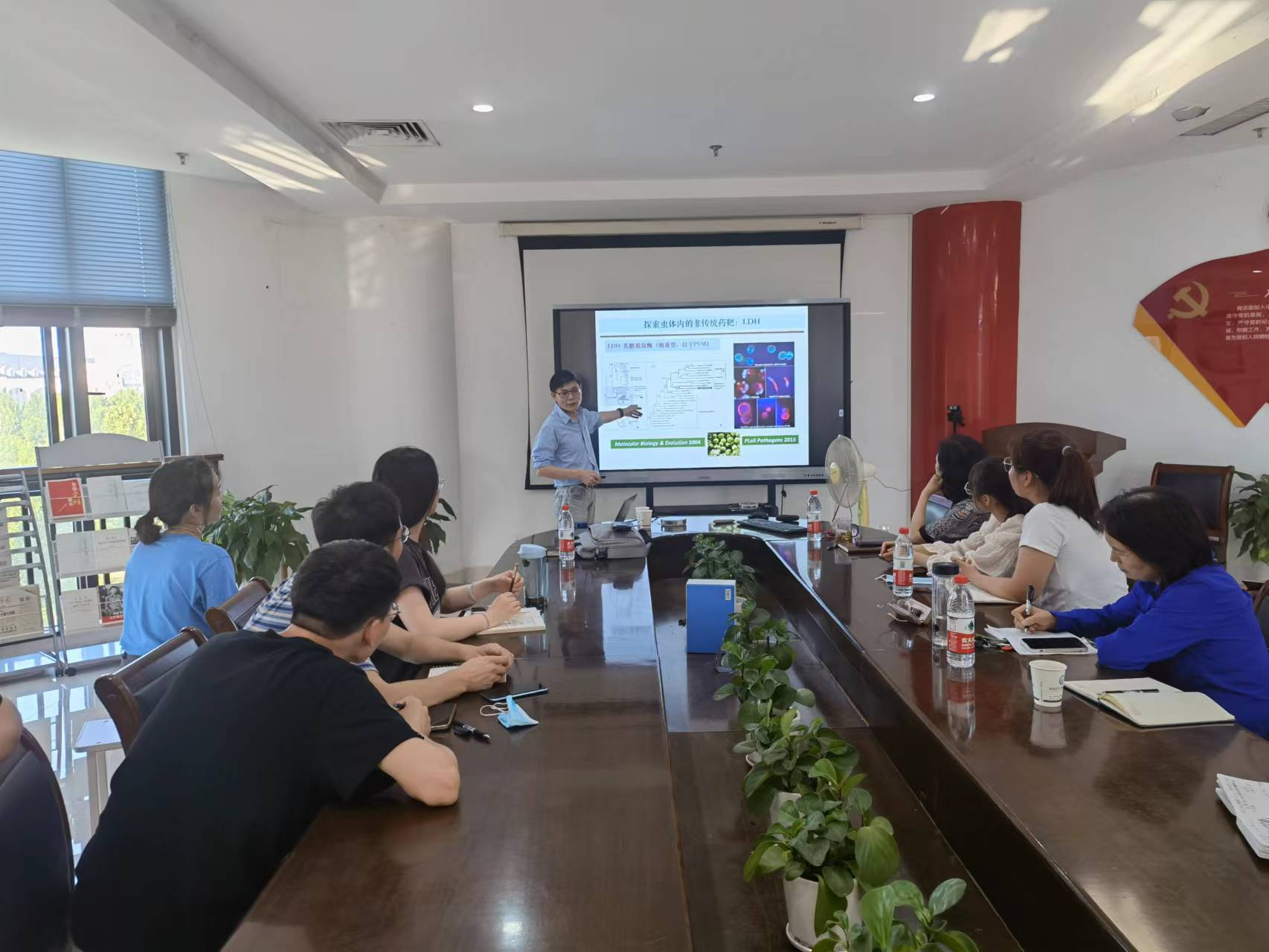 朱冠教授报告内容丰富,讲解深入浅出,参会师生受益良多。会后,参会师生就隐孢子虫虫体蛋白的定位和功能研究与朱冠教授进行讨论,以期加强今后在隐孢子虫关键蛋白与药物靶标筛选方向的进一步合作。(文/李晓迎)