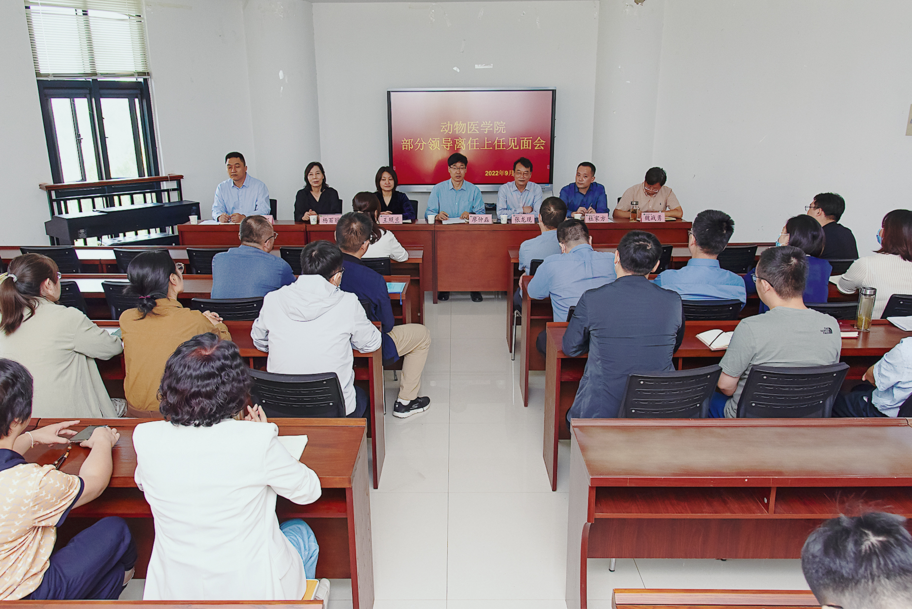 在第一实验楼530会议室举行学院部分领导离任上任见面会。院党委书记廖仲磊、院长张龙现、18禁直播