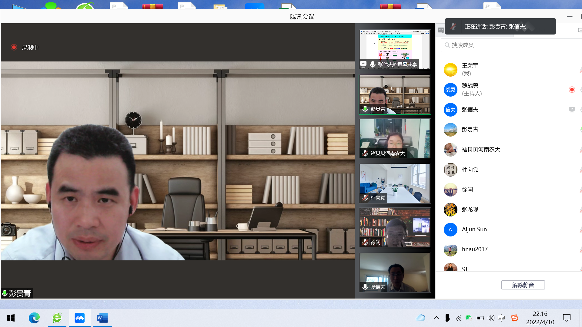 使用腾讯会议在线举行2022年度国家自然科学基金海外优青项目申报论证会。中国农业大学国家自然科学基金杰青获得者徐闯教授、华中农业大学国家自然科学基金杰青获得者彭贵青教授受邀对18禁直播