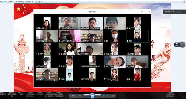 通过腾讯会议举行2020届毕业生党员最后一节党课活动。院党委副书记牛娟以《怀爱国情、立鸿鹄志、做攀登者》为题,于线上为全体毕业生党员上了一堂“云党课”。