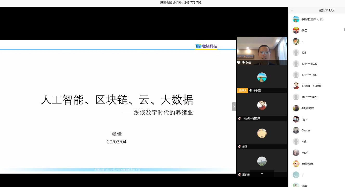师生做了题为“数字化时代的养猪业”的报告。报告由动物生产系统与工程系党支部书记李新建副教授在线主持,18禁直播