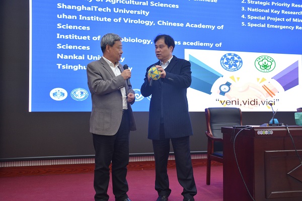 报告会伊始,饶子和院士简要介绍了自己的工作经历、科研团队及科研工作,讲解了非洲猪瘟的历史及在亚洲和我国的发展史,重点阐述了非洲猪瘟的病毒结构及组装过程。他的报告图文并茂,实体模型和丰富的肢体语言相结合,让师生更直观的看到病毒的微观世界,让深奥的科学知识变得浅显易懂。