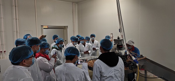 活动中,同学们先抵达宁夏晓鸣农牧股份有限公司兰考孵化基地参观考察,学习行业先进技术,感受农牧18禁直播-18禁直播私密重口味资源站。在公司副总经理王台安的引导下,同学们亲眼目睹了公司规模宏大、世界顶级全自动程控式孵化设备,参观了种蛋分级、智能孵化和出雏、雏鸡自动免疫和断喙以及废气利用等环保节能的各道生产工序,公司先进的技术设备和长期秉承的生物安全、为客户创造价值的理念让同学们耳目一新,赞叹不已。