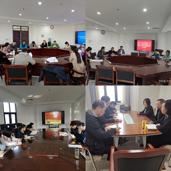 各教工党支部在第一实验楼各会议室集中学习党的十九届四中全会精神和省委书记王国生到校座谈讲话精神。