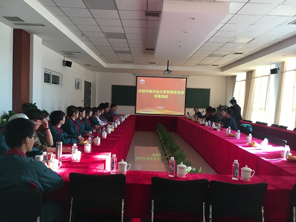 领导、老师与在光合蟹业实习的学生亲切座谈