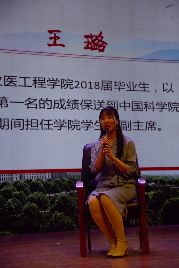2018届生工专业毕业生王璐作为优秀校友参与《青春不负韶华——毕业生访谈》节目,王璐曾以专业第一的成绩被保送到中国科学院,在校期间曾担任院学生会副主席,其参与的《从种“粮食”到种“饲草”——河南省粮改饲情况调查研究》获得第十五届“挑战杯”全国大学生课外学术科技作品竞赛哲学社会科学类国家级二等奖。在大会上,她结合自身成长经历阐述了她所理解的学习职业规划、科技创新、学生干部之间的互促互进关系,鼓励学子们主动投身科技创新启迪思维、增长才干。在场师生认真聆听,深受启发。