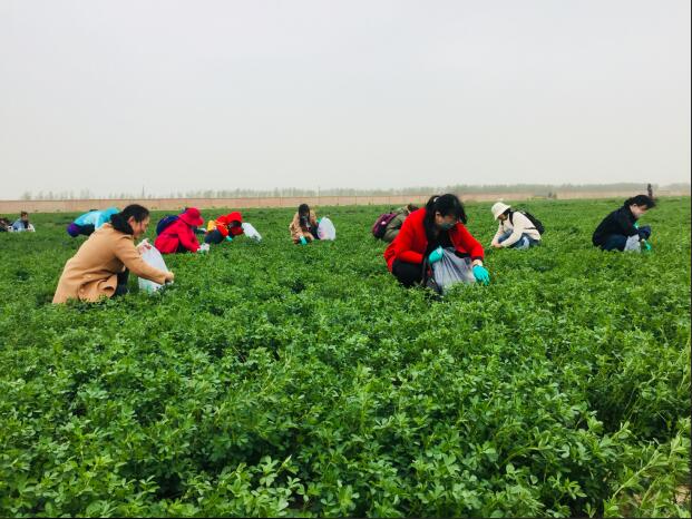 教职工现场采摘苜蓿