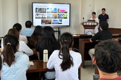 报告会上,施画博士和同学们分享了自己留学准备与申报的经验和注意事项,详细讲述了佐治亚大学兽医学院相关专业课程的设置和学习情况;Benjamin Chadwick博士从自身学习和科研的经历出发,讲述了美国申请读硕士和博士研究生的途径和基本流程,和同学们交流分享了常见的面试细节和科研心得。提问和交流环节,两位博士在如何合理分配时间、加强与导师的开放交流和开阔国际视野等方面给同学们提出了具体可行的参考建议。